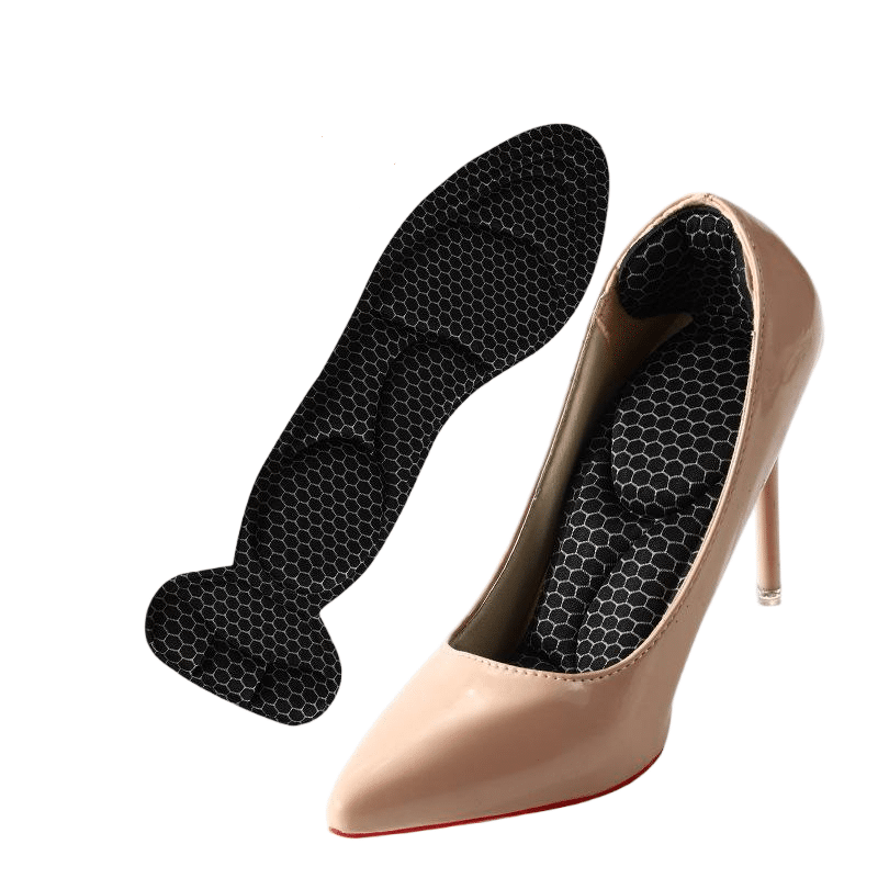 The insole is filled with high-density foam and a highly resilient material that resists collapse even after prolonged use, providing stable support. Its scientifically designed zones perfectly conform to the curves of the foot, targetedly relieving pressure points and effectively distributing the pressure from high heels, ensuring comfort even during extended wear.
